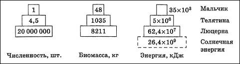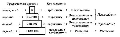 Одним из наиболее удачных и наглядных примеров классических экологических пирамид служат пирамиды, изображенные на рис. 8[8]