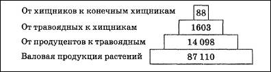 Рис. 7. Пирамида энергии: цифры – количество энергии, кДж • м-2