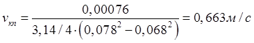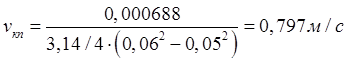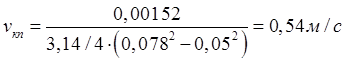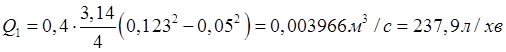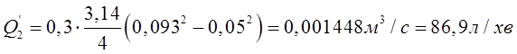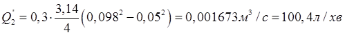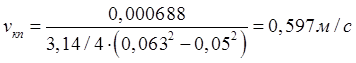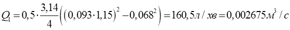 Для визначення потрібних витрат промивальної рідини скористаємося рекомендованими швидкостями висхідного потоку: 0,3.. 0,4 до 0,6 м/с. Більші значення рекомендуються для м'яких порід, менші – для твердіших. Тому для першого інтервалу приймемо  , а для другого . Отже, для першого інтервалу витрати повинні складати