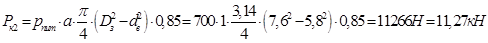 Для закріпленої ділянки відміна полягає в тому, що діаметром свердловини буде внутрішній діаметр обсадної колони. В нашому випадку він дорівнює згідно з табл. 1