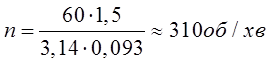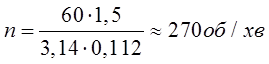 згідно з рекомендаціями приймаємо лінійну швидкість різця 1,5 м/с.