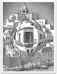 Все же творчество Эшера интересно математикам не только потому, что в его работах можно обнаружить отголоски конкретных математических результатов. Скорее они вызывают ассоциации с общими математическими идеями. Платон считал, что абстрактные идеи живут отдельно в "мире чистых сущностей" (таковы идеи пространства и времени). В таком, платоновском понимании мир Эшера и мир математики.