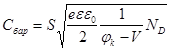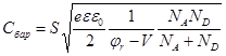 Для барьерной емкости резкого симметричного p-n перехода имеем: