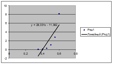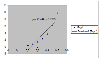 Для ПД линия тренда имеет уравнение y = 29,444x - 6,7965