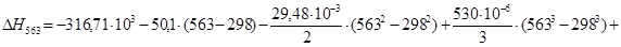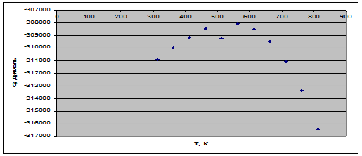 5. При термодинамическом анализе мы выбрали условия проведения процесса, т.е. На всем температурном интервале реакция является экзотермической (идет с выделение тепла). Реакция необратимая и идет самопроизвольно.