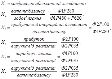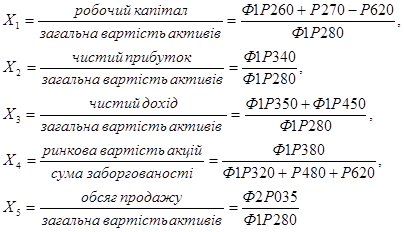 де Z –залежна змінна (інтегральний показник фінансового стану підприємства);