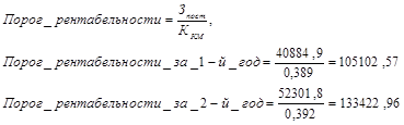 Зная коэффициент контрибуционной маржи, можно рассчитать точку безубыточности в натуральном выражении, или порог рентабельности в стоимостных единицах измерения: