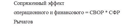 На основании полученных данных можно определить сопряженное воздействие финансового и операционного рычагов и совокупный уровень риска: