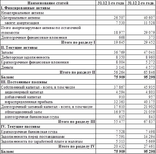 Исходя из первоначальный данных, актив баланса составил на конец 1-го года 75 909 тыс. долл. и на конец 2-го года 95 298 тыс. долл.
