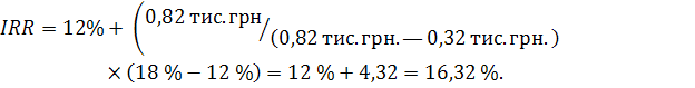 Висновок: = 16,32%, він більший ставки дисконту, тобто = 12%, це означає, що проект прибутковий.