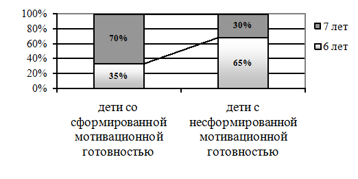 Рассмотрение проблемы мотивационной готовности к обучению в школе позволило предположить, что мотивационная готовность детей 6 и 7 лет имеет качественные отличия, которые позволяют большинству детей 7 лет быть готовыми к включению в учебную деятельность в отличие от детей 6-летнего возраста, у которых преобладают игровые мотивы.
