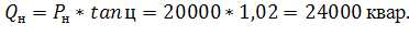 Поэтому необходимо скомпенсировать реактивную мощность до значения = 0.25;