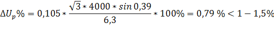 В нормальном режиме работы потеря напряжения в реакторе, как правило, не должна быть выше 1−1,5%.