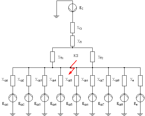 При выборе реактора учесть подпитку точки короткого замыкания К2