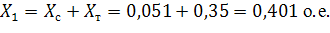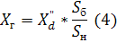Производим выбор оборудования с расчетом индуктивных сопротивлений и сверхпереходных ЭДС для отдельных элементов схемы замещения. Расчет производим в о. е.