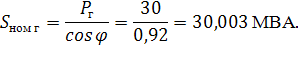 Номинальный коэффициент мощности генераторов cosφ0.92