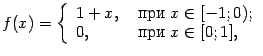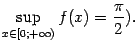 на отрезке . Эта функция ограничена на отрезке (очевидно, что ) и , однако значение1 она не принимает ни в одной точке отрезка (заметим, что , а не 1). Дело в том, что эта функция имеет разрыв первого рода в точке , так что при предел не равен значению функции в точке0. Далее, непрерывная функция, заданная на интервале или другом множестве, не являющемся замкнутым отрезком (на полуинтервале, полуоси) также может не принимать экстремального значения. В качестве примера рассмотрим функцию на интервале . Очевидно, что функция непрерывна и что и , однако ни значения0, ни значения1 функция не принимает ни в какой точке интервала . Рассмотрим также функцию на полуоси . Эта функция непрерывна на , возрастает, принимает своё минимальное значение0 в точке , но не принимает ни в какой точке максимального значения (хотя ограничена сверху числом и