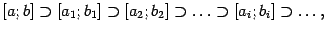 в которой каждый следующий отрезок вдвое короче предыдущего. Последовательность - неубывающая и ограниченная сверху (например, числом ); следовательно (по теореме 2.13), она имеет предел . Последовательность - невозрастающая и ограниченная снизу (например, числом ); значит, существует предел . Поскольку длины отрезков образуют убывающую геометрическую прогрессию (со знаменателем ), то они стремятся к 0, и , то есть . Положим, теперь . Тогда