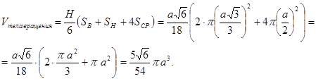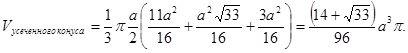 При вращении тетраэдра относительно оси, проходящей через среднюю линию грани тетраэдра, получается тело вращения, объем которого равен
