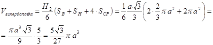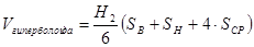 2). Найдем объем однополостного гиперболоида вращения по формуле Симпсона.