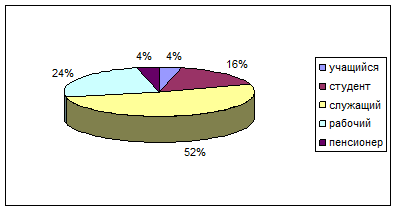 «Род занятий». Наибольшее количество потребителей служащие (52%). См. рис.11.
