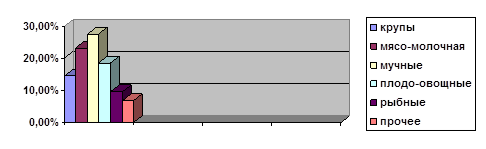 В розничном товарообороте крупа, включая бобовые, занимает небольшой удельный вес 1,1% всех продовольственных товаров.