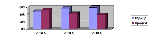 За период с 2008 по 2010 год наблюдается расширение ассортимента и рост продаж крупяных изделий и круп.