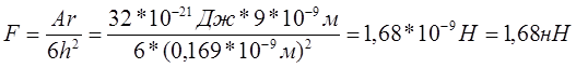 A* – константа Гамакера, h – расстояние между поверхностями пластин, er