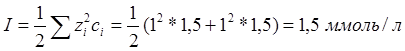 Рассчитаем ионную сила раствора 1,5 ммоль/л раствора KBr: