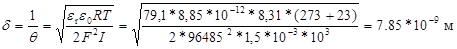 Рассчитаем величину толщины диффузного слоя d: