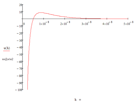 Дж. Вычисления сделать для расстояний между пластинами h: 2, 5, 10, 15, 25, 50 нм. Построить график зависимости u = f(h).