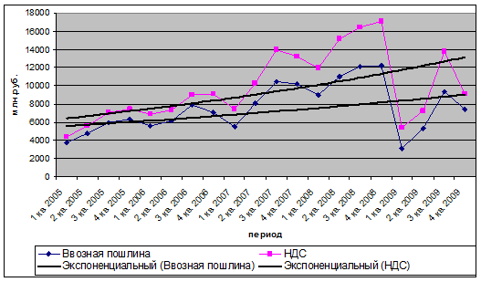 2.2 Статистический анализ таможенных платежей в период 2005 – 2009 гг.