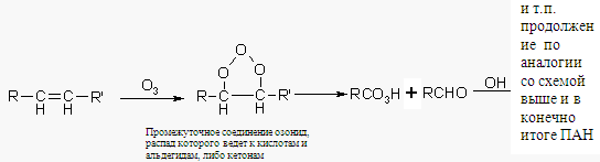 Давая ацилпероксидный радикал, который в конечном итоге приводит к образованию важнейших (с точки зрения воздействия на ОС) продуктов веществ группы ПАН – пероксиацилнитратов.