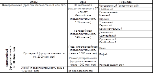 Вся история существования Земли подразделяется на временные отрезки, для каждого из которых характерны определенные физические, химические, климатические условия, а также этапы эволюции живой природы.