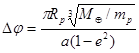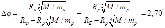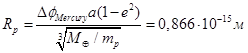Поскольку обозначения очевидны, то необходимо лишь пояснить, что в качестве расчетного размера элементарной частицы принят радиус частицы с массой, равной массе протона, только для удобства при анализе. Безусловно, этот радиус будет зависеть от величины гравитационного поля, и мы используем некоторый усредненный размер, который еще необходимо определить, желательно на основе экспериментальных данных. Такому условию больше всего соответствуют данные о смещении перигелия Меркурия, на основании которых можно вычислить величину смещения перигелия других планет и сравнить их с опытными данными. Для сопоставимости с результатами, получаемыми методами общей теории относительности, а также ввиду сложности нахождения прямого аналитического решения, будем определять зависимость показателя преломления от расстояния между Солнцем и планетой через фокальный параметр, то есть через среднее арифметическое значение обратных радиусу величин в точках апогея и перигея: