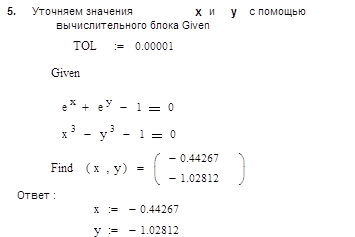 Уравнения и системы уравнений, возникающие в практических задачах, обычно можно решить только численно. Методы численного решения реализованы и в программе MathCad.