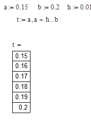 тем, что изменяя значения a, h, bавтоматически изменяется и таблица вывода ранжированной переменной |