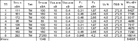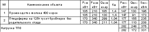 Таблица 2.2 - Данные для определения нагрузок ТП-8