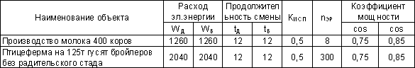 Допускается использовать таблицу для определения реактивной мощности. Пример расчета электрических нагрузок линий 0,38 кВ и ТП 1 приведен для потребителей представленных в таблице 2.1. При этом использованы данные нагрузок на вводе потребителей.