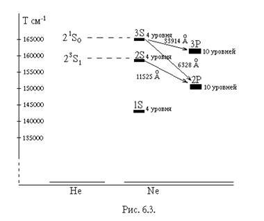 Инверсное заселение состояний происходит по трехуровневой схеме.