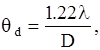 Дифракционный угол расхождения лучей из ОКГ определяется соотношением: