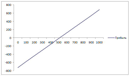 - Графически изобразить прибыль при различных уровнях продаж. Найти точку безубыточности.