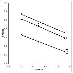 2.4.4 Расчет энергии активации процесса сорбции палладия на волокнах ЦМ-А2, Мтилон-Т и ВАГ