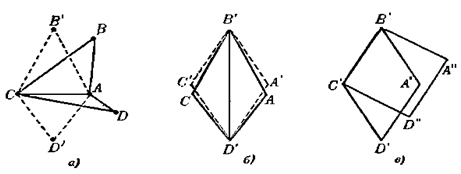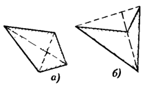 Так, на рис. 1.1.1фигуры а),б),в)выпуклые фигуры, а фигура на рисунке 1.1.1 г)не выпукла. Круг и треугольник являются выпуклыми фигурами, четырехугольник же может быть как выпуклым, так и невыпуклым в зависимости от того, пересекаются ли его диагонали внутри или вне четырехугольника (рис. 1.1.2 а, б). [1, 38]