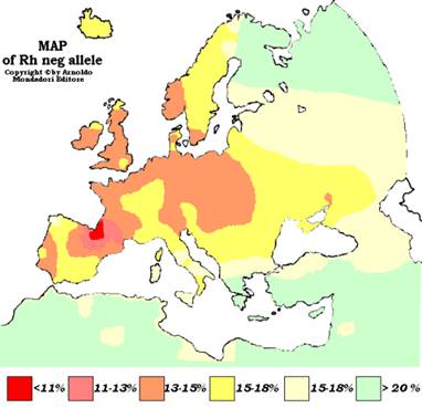 Резус-фактор — это антиген (белок), который находится на поверхности красных кровяных телец (эритроцитов). Он обнаружен в 1919 г в крови обезьян, а позже — и у людей. Около 85 % европейцев (99 % индейцев и азиатов) имеют резус-фактор и соответственно являются резус-положительными. Остальные же 15 % (7 % у африканцев), у которых его нет, — резус-отрицательный.