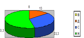 Выводы об уровне развития: Высокий уровень (В) – 0 детей, Достаточный уровень (Д) 3 ребенка (20%), Средний уровень (С) – 5 детей (33,3%), Низкий уровень (Н) – 6 детей (40%%), стадия неопределенности – СН 1 ребенок (6,5%).