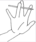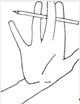 Вложите шестигранный карандаш между выпрямленными указательным, средним и безымянным пальцами.