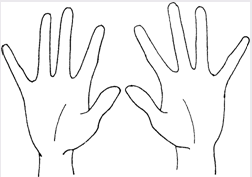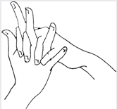 Потом на тыльную сторону правой руки нажимают пальцы левой руки и в петушиный гребешок превращаются пальца правой руки.