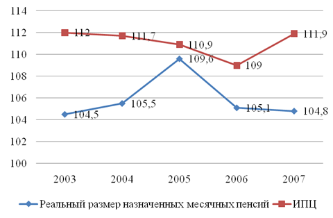Необходимо отметить еще одну тенденцию, обусловленную действующим механизмом индексации пенсионных прав: отставание индекса роста доходов ПФР в расчете на 1 пенсионера от темпов роста среднемесячной заработной платы в стране. Так, только за период 2002–2007 гг. накопленное отставание превысило 1,5 раза. Данная тенденция резко усиливается в условиях финансового кризиса.