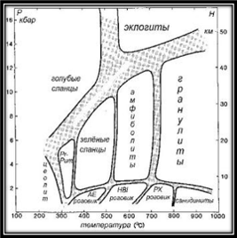Рис.1 Схема фаций метаморфизма.